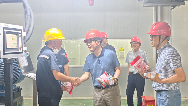 韓新偉一行深入明日新材料、新光公司等多個(gè)生產(chǎn)車間及倉庫,實(shí)地查看了員工的工作環(huán)境,詳細(xì)了解防暑降溫措施落實(shí)情況,為一線員工送上礦泉水、毛巾等防暑物資,并與員工親切交談,叮囑他們合理安排作息,確保安全生產(chǎn)。
